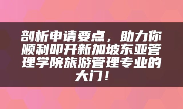 在全球旅游业蓬勃发展的时代背景下,旅游管理专业成为极具吸引力的热门学科。新加坡东亚管理学院(EastAsiaInstituteofManagement,简称EASB)凭借其独特的教学模式、...