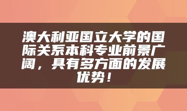 澳大利亚国立大学的国际关系本科专业前景广阔,具有多方面的发展优势。 学术深造方面 澳大利亚国立大学在国际关系领域学术地位卓越,其政治学排名世界第9,全澳第1。该专业的学生有机会接触到...